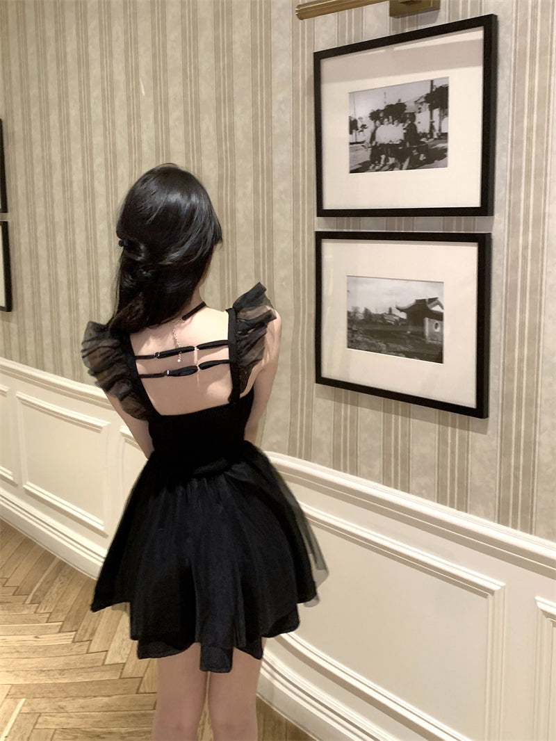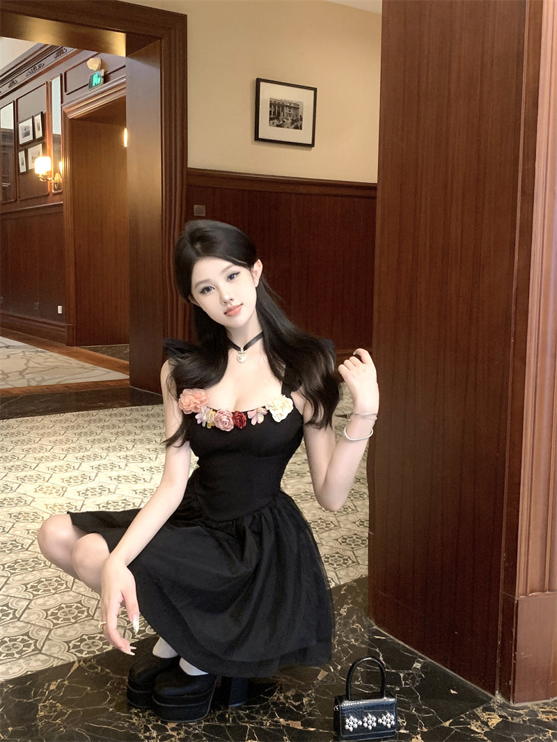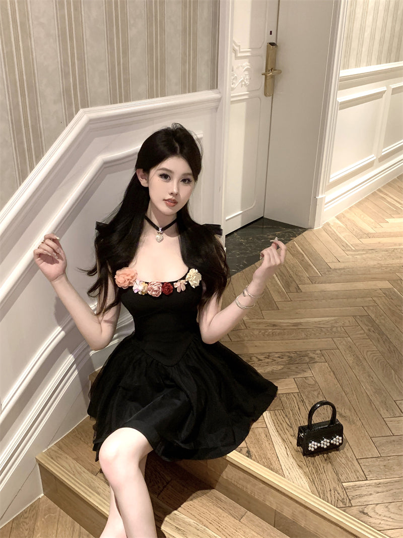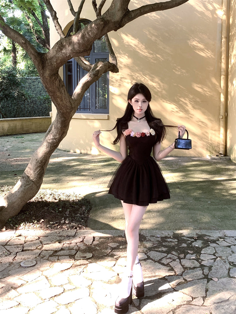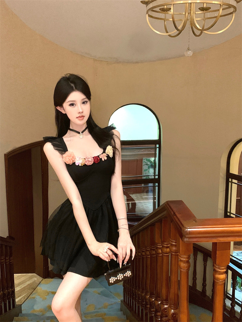 Y2K Style Flutter Straps A-Line Mini Dress Vogue Colorful 3D Flowers Accent Cascade Tulle Overlay Short Dress AP1935